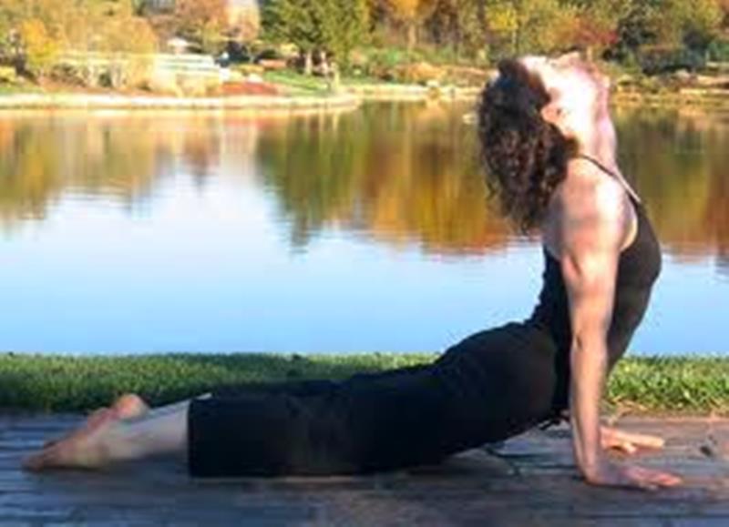 How to do it: From low push-up, inhale, press down on your hands, and scoop your chest forward. As you lift up your torso, roll over the tops of your toes and move your torso forward. Press the tops of your feet down into the mat. Engage your quadriceps to lift the tops of your thighs off the mat. Pull your shoulders down your back, squeezing them together, as you press your chest forward and up. Gaze forward so that your neck is in line with your spine.