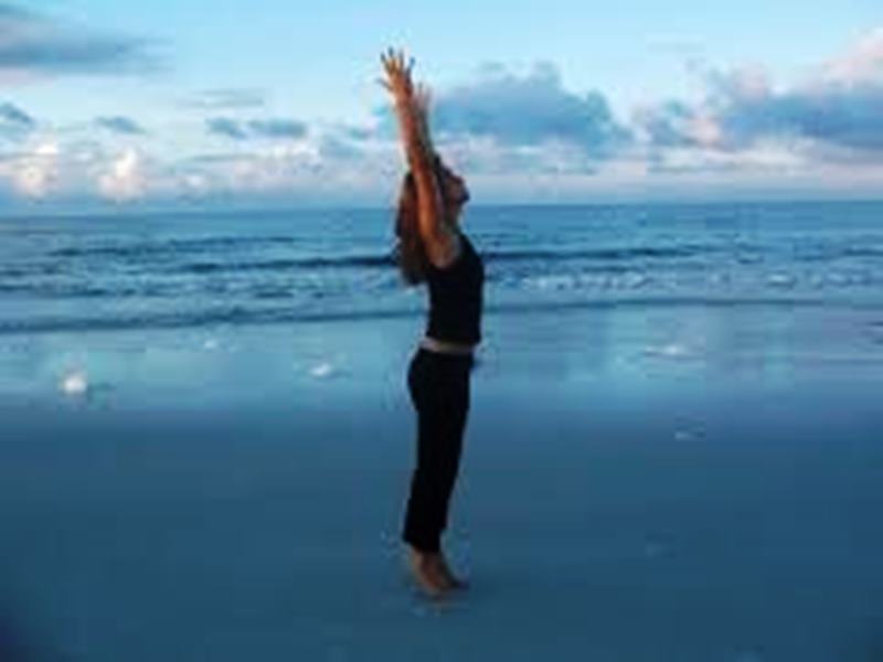 The benefit: This pose opens your torso, neck, chest and shoulders. With hands overhead, this pose relieves gravitational compression on your body.